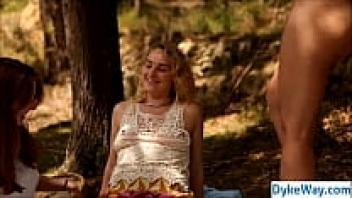 Before massaging their clits and slamming their pussies with dildos until they climax, kinky lesbians sunbake.