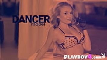After a seductive striptease, gorgeous busty model Harley Rae flashes her adorable pussy.