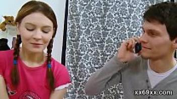 The boyfriend helps with the virgin nympho's hymen physical and screwing.