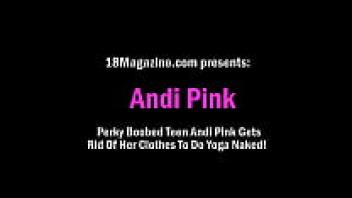 Andi Pink, a perky boobed teen, takes off her clothes to practice yoga naked!