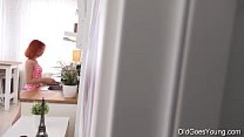 A naughty girl rides a hard cock in the kitchen in Old Goes Young.