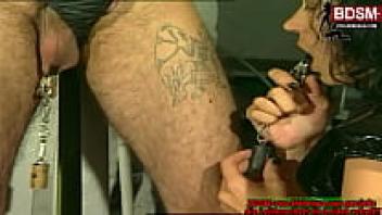 A slave man is humiliated by a German BDSM dominatrix.