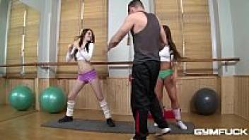 Bella B. and Timea Bela, two sporty teenagers, make your cum pour with their gym love!
