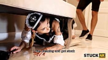 This is STUCK4K. Due to the fact that Maid Adele Unicorn is so attractive, her boyfriend gives her a leg.