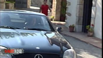 Outside, a gorgeous brunette with large natural breasts was adored.