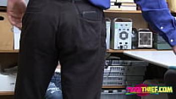 After a deal for no police, a skinny, petite teen caught shoplifting is strip searched and adored by the guard. Liz Jordan and Mike Mancini
