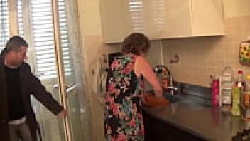 He is caught masturbating by a mature brunette.