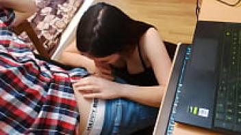 Currently, I am at home alone myself with my brother, and I am sucking his cock. He loved my tight pussy.