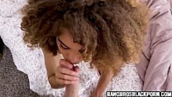 At long last, my incredibly attractive ebony stepsister is sucking my enormous cock.