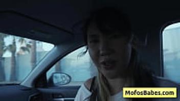 In front of her buddy, a gorgeous Asian woman plays with her naturally large breasts in the automobile (Tomie Tang, Charles Dera).