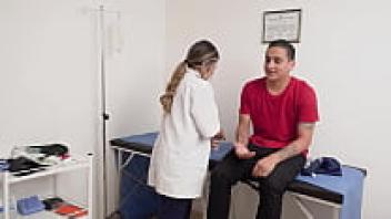 Before requesting anal intercourse, a babety nurse with large tits gathers sperm samples in her pussy on FAKEhub.