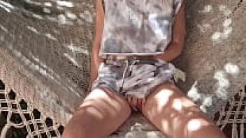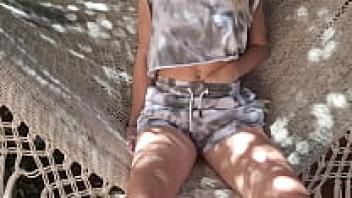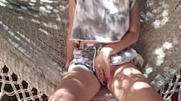 Masturbating in the garden with a tight, shy pussy