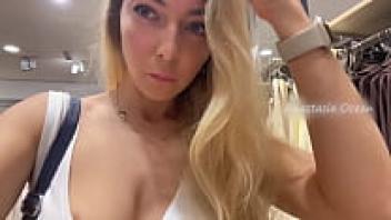Babe walk, displaying nipples in a public mall. Not wearing a bra