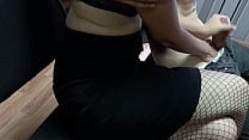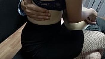 Teen Big Tits, Cum on Legs: I requested to handjob my step-sister in pantyhose.