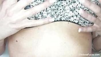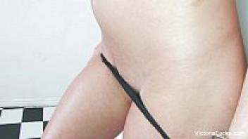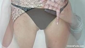 Victoria, a gorgeous blonde with long legs, strokes her pussy with pleasure.