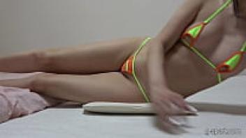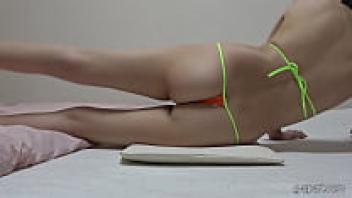 Japanese Sakura Misaki mini bikini, pussy wedgie stretch.