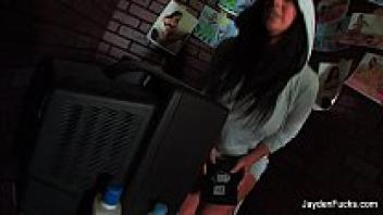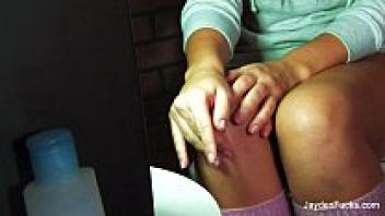 Crystal Wolfe, a chubby amateur porn star, rubs her pussy.
