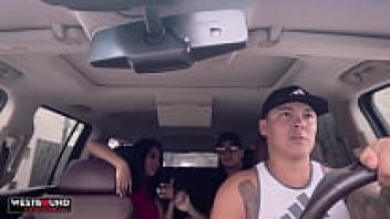 Busty Latina Babe Kesha Ortega adores Guy in the Backseat of Car.