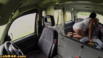 Before riding cock, a black-haired cabbie is doggie pummelling.