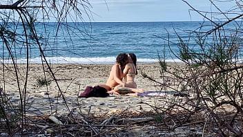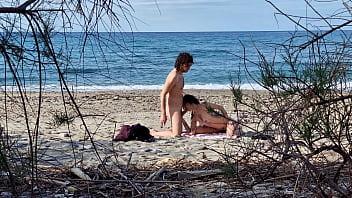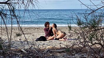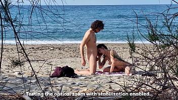 A passionate couple having sexual encounters on the beach. Orgasms of squirting on the part of a female at 7.40 and 13.25 - - With my brand-new telephoto lens, I took this video.