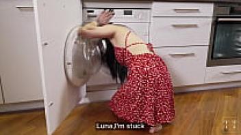 They got stuck in the kitchen, so I assisted them with my enormous cock.