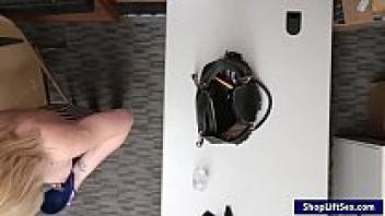 babety blonde hottie fills up her shaved pussy with a dildo before serious loveing
