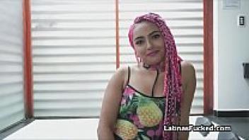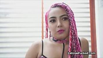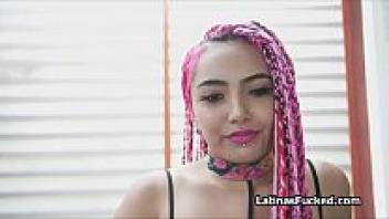 Long pink haired Latina amateur on cock.
