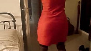 1583 (I) - loving Homemade Girl, Red Satin Dress, Satin Panties, Masturbation, Rubbing, POV, Blowjob, and Ass Licking