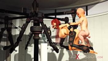 Sci-fi BDSM! Red haired gorgeous gagged girl in shackles gets loved hard by a midget man!