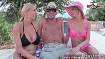 A young woman from Germany was picked up by an acquaintance on the beach for a threesome ffm.