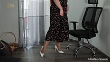 Lady Boss Femdom Handjob in Nude Pantyhose with Crossed Legs