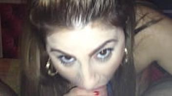 A cuteie's long slobbery blowjob during real amateur home-made sex