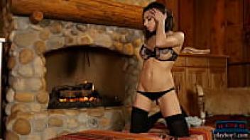 A fireplace striptease featuring the boobs of the MILF model Darcie Dolce