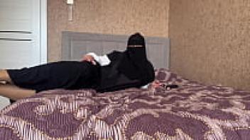 While masturbating her pussy, an Arab woman wearing a headscarf experienced a double orgasm.