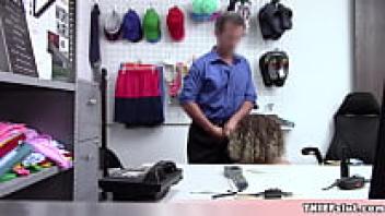When a cute ebony shoplifter girl is caught, the mall cop and her boyfriend punish her pussy.