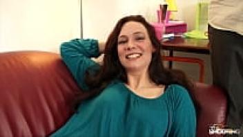 A timid brunette surprised him with gorgeous lingerie and bravely took a firm dick, allowing him to cum on his tits instead.