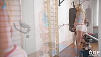 Bella B. and Timea Bela, two sporty teenagers, make your cum pour with their gym love!