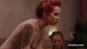 Upskirt wet pussy cum in underwear while slapping lovely asses and fingering fisting babes