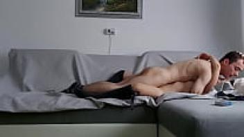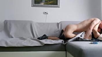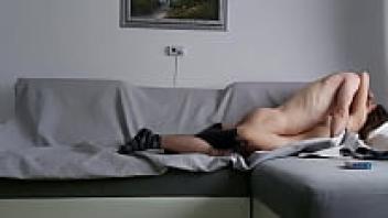 On the couch, having romantic sex with a gorgeous teenage girlfriend