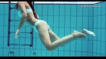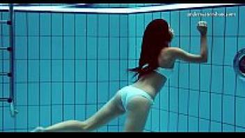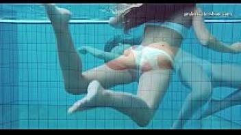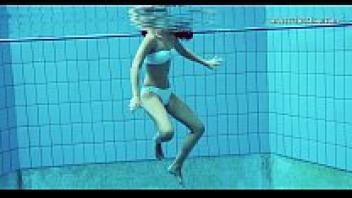 Hot Russian females swimming in a pool.