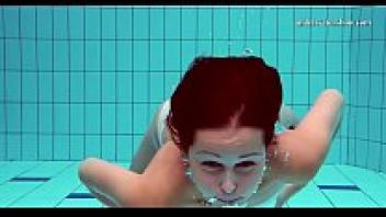 shaved pussy and hot tits while submerged in water