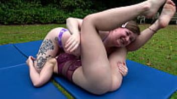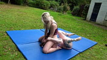 A gorgeous blonde lesbian woman with tiny tits is having an affair with a lovely, slender Latina.