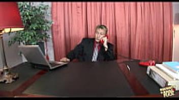 Despite the fact that she wears glasses, a cute blonde secretary makes her employer appreciate her tight ass.