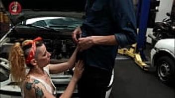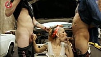 Within the confines of the mechanical workshop, an Argentine punk asshole, female, and sex addict (nymphomaniac) delivers her ass to two pijudos. @katrinapunkok