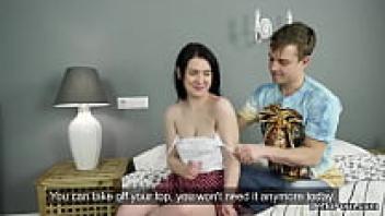 The adorable little girl stretches her small pussy and then gets deflorated.