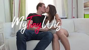 FMM 3some with a teen brunette who is slender and has tiny tits
