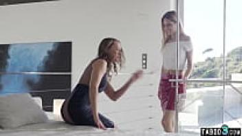 Slim Italian and Hungarian lesbiansRebecca Volpetti and Blue Angel stroking one another