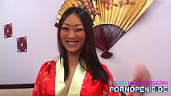 After being interviewed, an Asian cutie is adored.