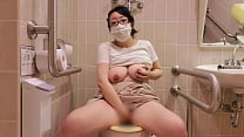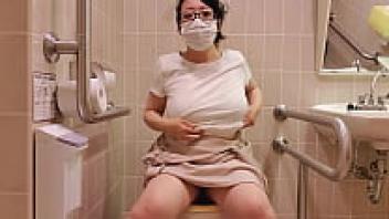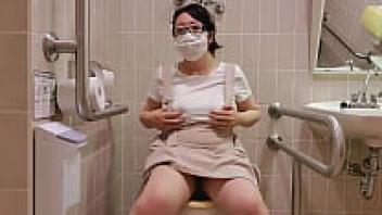 A married woman making a loud noise while masturbating in the store's restroom