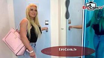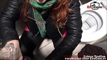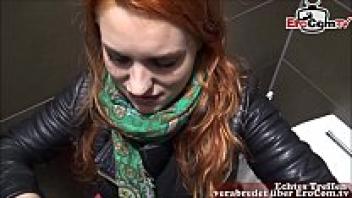 At the public restroom, the German redhead young chick teen with the best blowjon